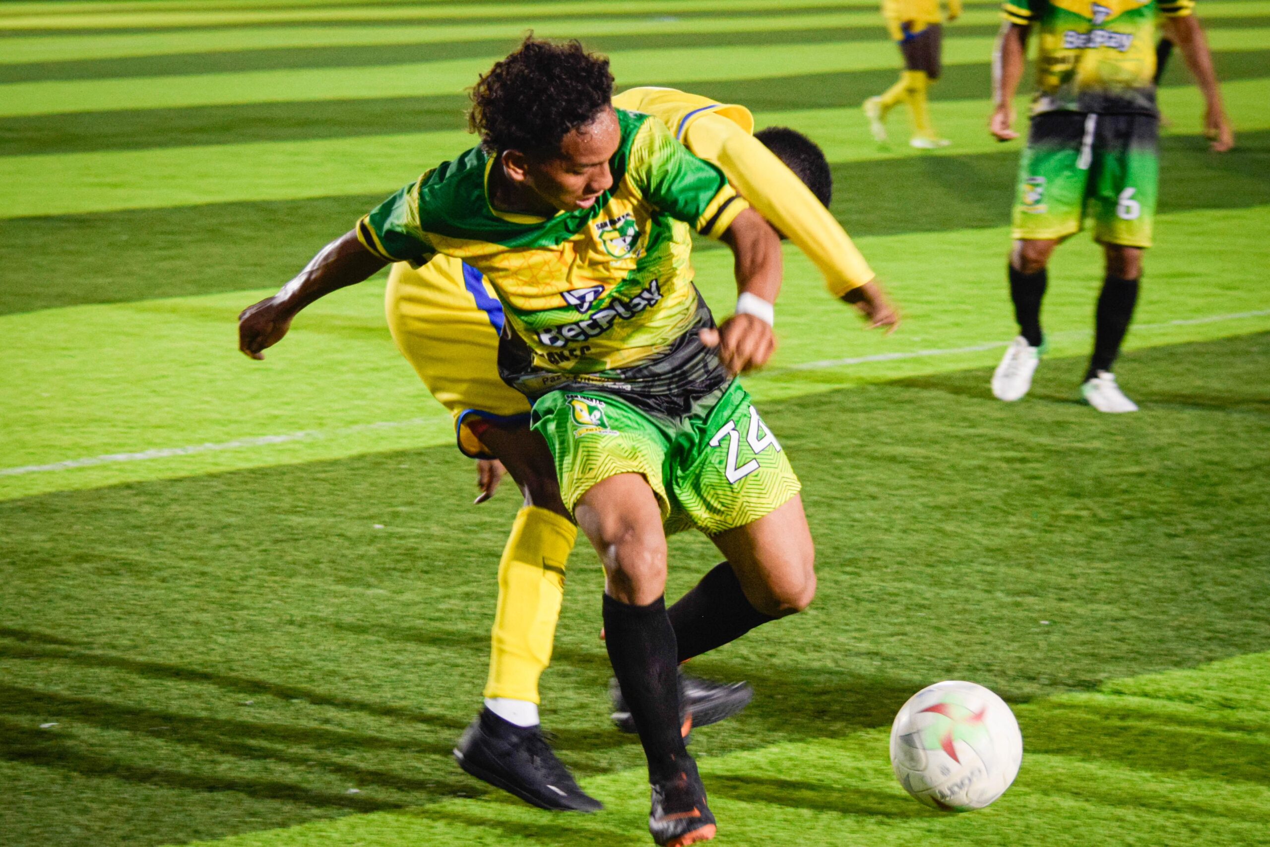 Jean Carlos Buelvas, marca para Paz y Futuro, poniendo el marcador 3-2 al minuto 87′. Foto: Estefanía Caro.