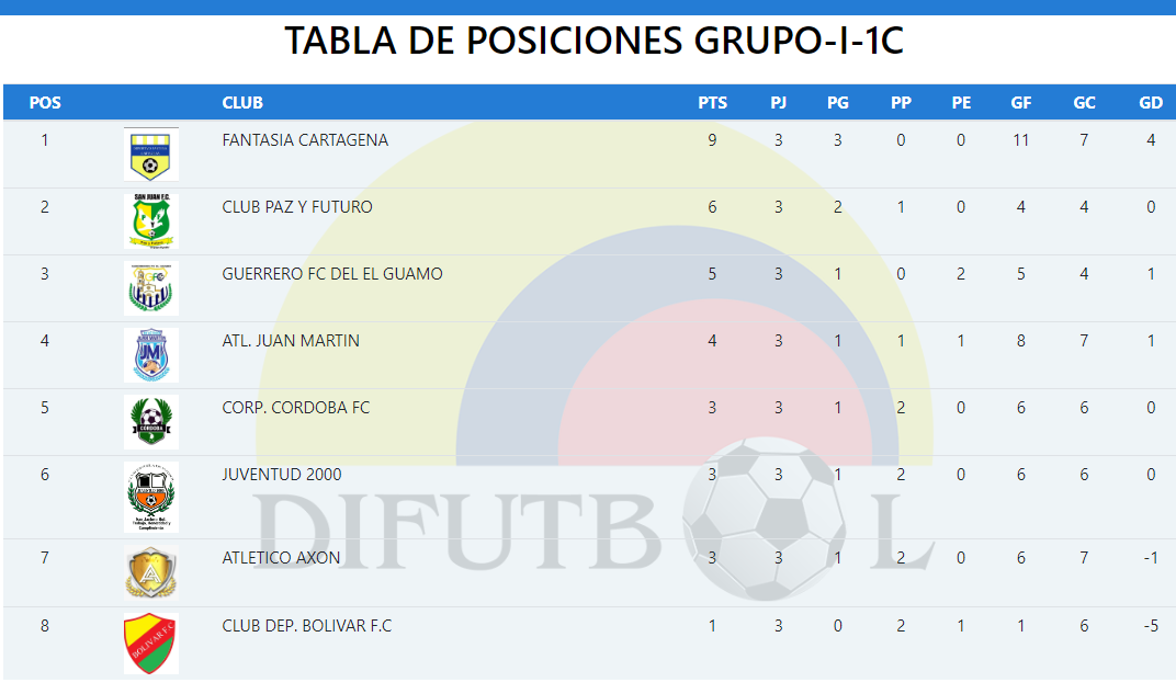 Con este triunfo, San Juan Paz y Futuro alcanza los 6 puntos, ubicándose en la segunda posición del grupo I del campeonato, liderado por Fantasía de Cartagena con 9 unidades.